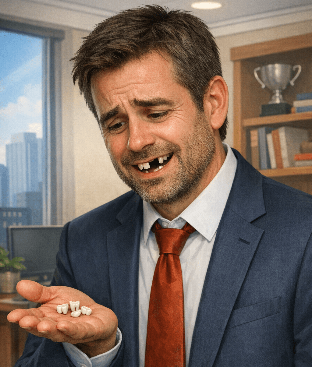 “Ni šlo,” se strinja Borut žalostno in pomete koščke zob v smeti.